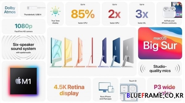 프로세서는 고성능과 고효율을 제공하는 M1 칩을 사용하며 8코어 CPU는 이전 세대 대비 최대 50% 향상, 8코어 GPU는 이전 세대 대비 최대 40% 빠른 그래픽 처리 성능을 제공한다. 저장 장치는 기존 대비 2배로 증가한 최대 2TB 용량을 이용할 수 있다.